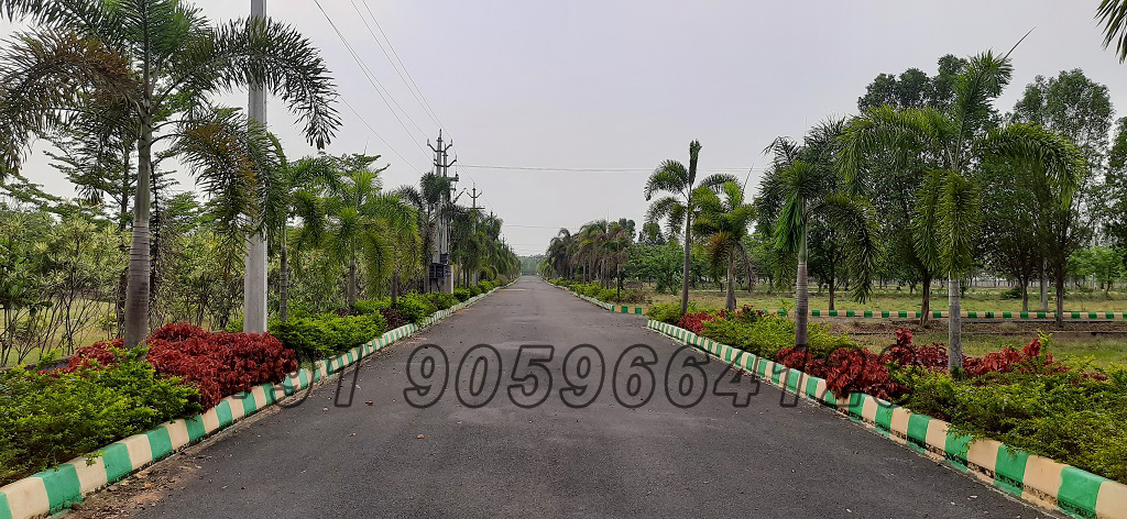 Blacktop Roads || Avenue Plantation || 100% Vasthu || Grand Entrance Archway || Street Lights || Drainage System || Complete Compound Wall || Children Play Area || Water Connection to each and every plot||